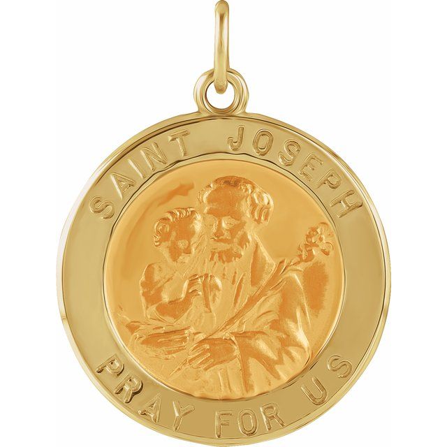 This 14 Karat Yellow Gold St. Joseph Medal measures 18 mm, roughly equivalent to 3/4-inch.