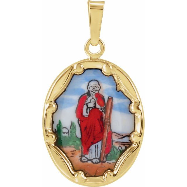 14K Yellow Gold Porcelain St. Jude Pendant