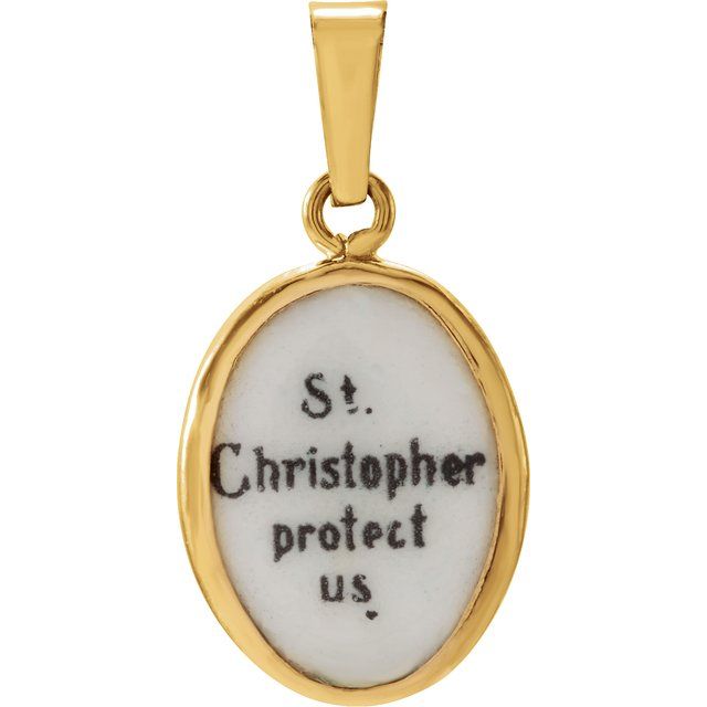 This Porcelain St.Christopher Penda measures 13 X 10 millimeters, approximately 1/2-inch by 3/8-inch.