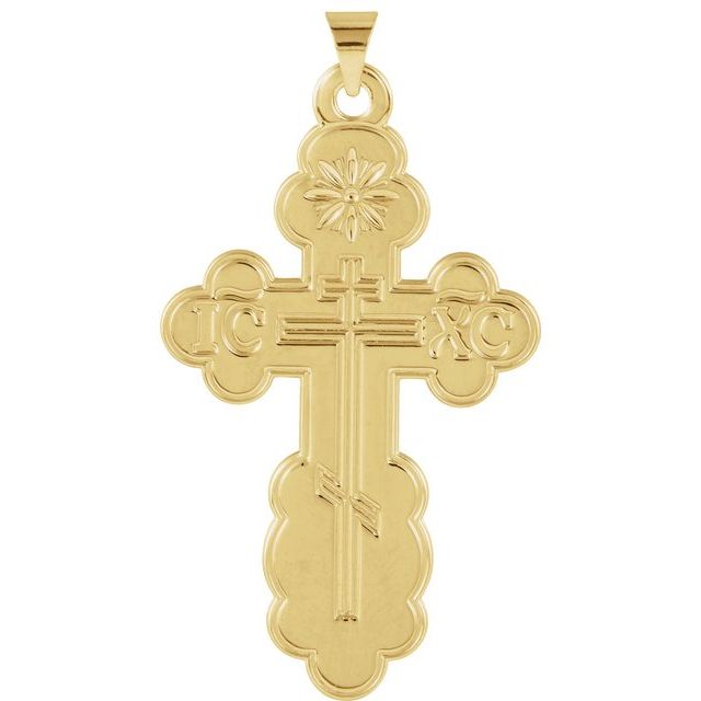 This Die Struck Orthodox Cross available from Catholic Shop.comfeatures dimensions of 40 x 26 millimeters, approximately 1.57-inches by 1-inch.
