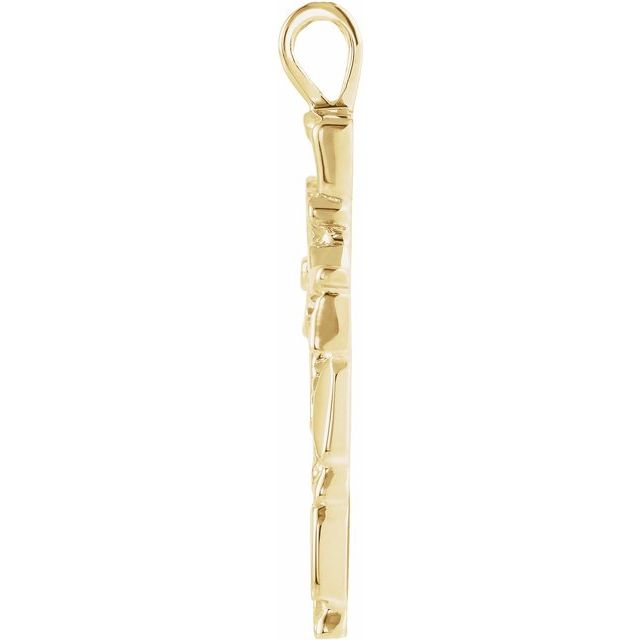 This Nugget Cross Pendant available from Catholic Shop.comfeatures dimensions of 27 X 18 millimeters, approximately 1.06-inches by 3/4-inch.