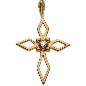14K Yellow Gold Cross Pendant with Diamond