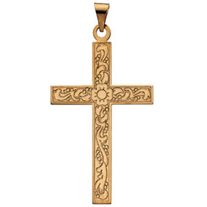 At CatholicShop.com, we believe that wearing a cross isn't just a fashion statement; it's a profound testament to one's faith. Our collection of 14 Karat Yellow Gold Crosses offers a beautiful way to carry your devotion with elegance and grace. The cross, a timeless symbol of redemption and victory over sin, has been cherished by Christians throughout history. It serves as a reminder of Christ's ultimate sacrifice and the hope of salvation, making it a meaningful gift for special occasions like First Communion, Confirmation, or a loved one's baptism.