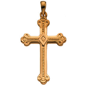 14K Yellow Gold Die Struck Orthaodox Cross Pendant