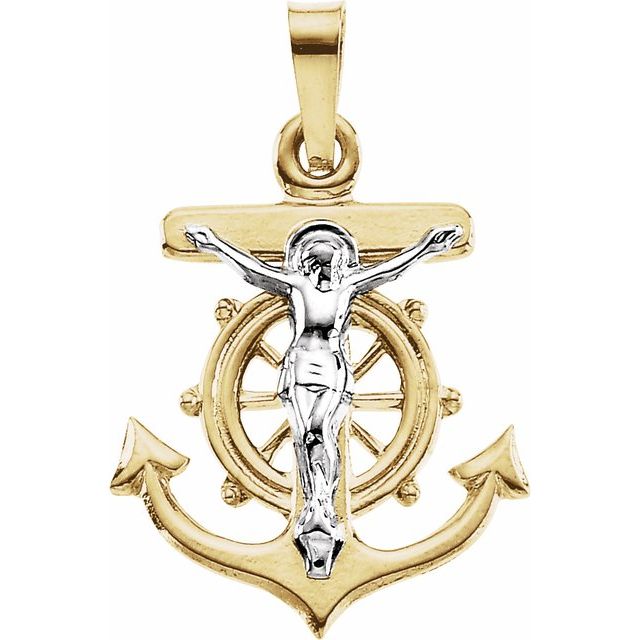 14K Yellow Gold/White Two Tone Mariners Cross Penda
