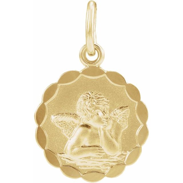 This Angel Pendant measures 12 millimeters, approximately 1/2-inch round.