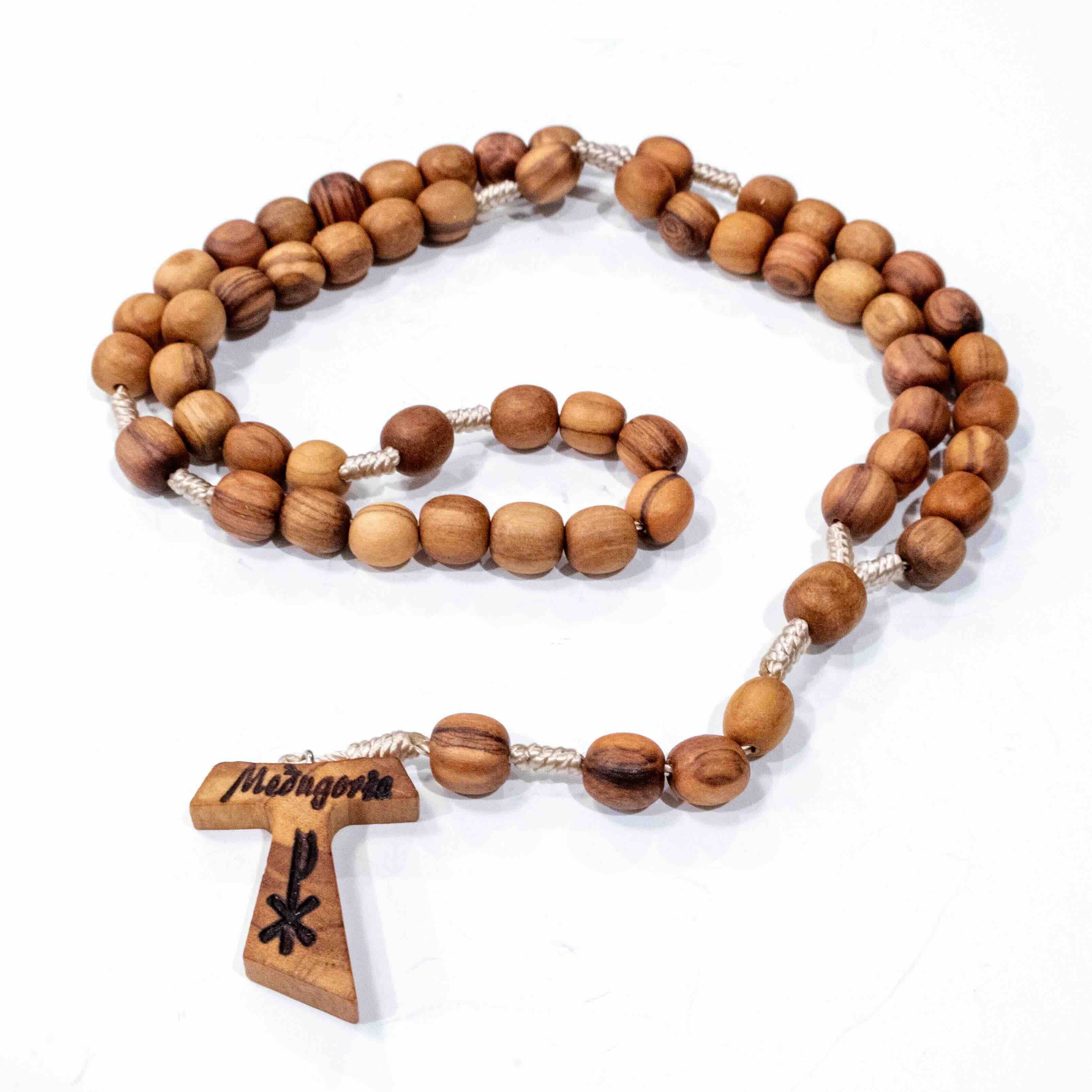 Handmade Medjugorje Olive Wood Tau Cross Rosary