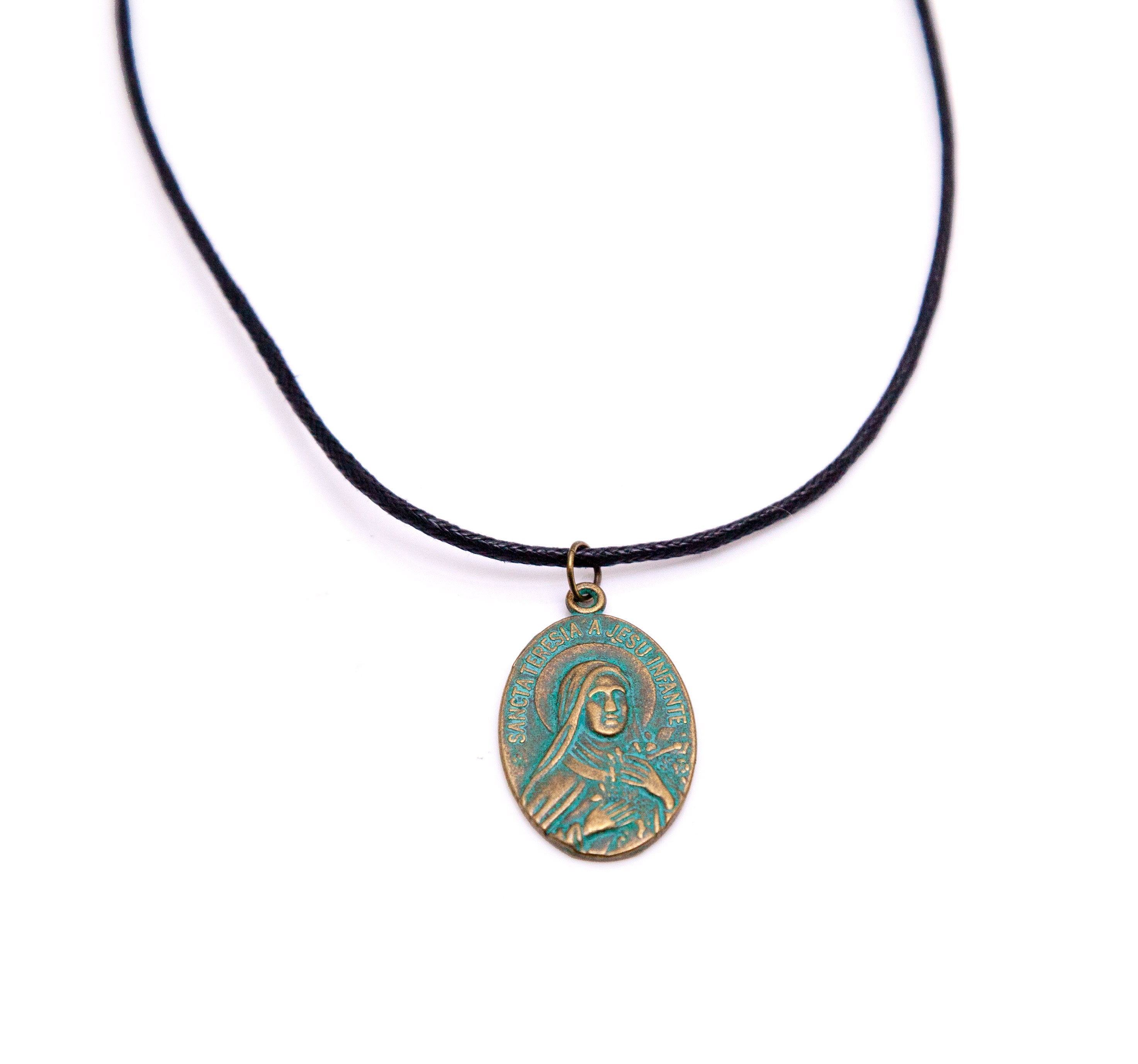 This beautiful vintage-style St. Teresa Medal by Apostle Gear comes on a cord necklace.