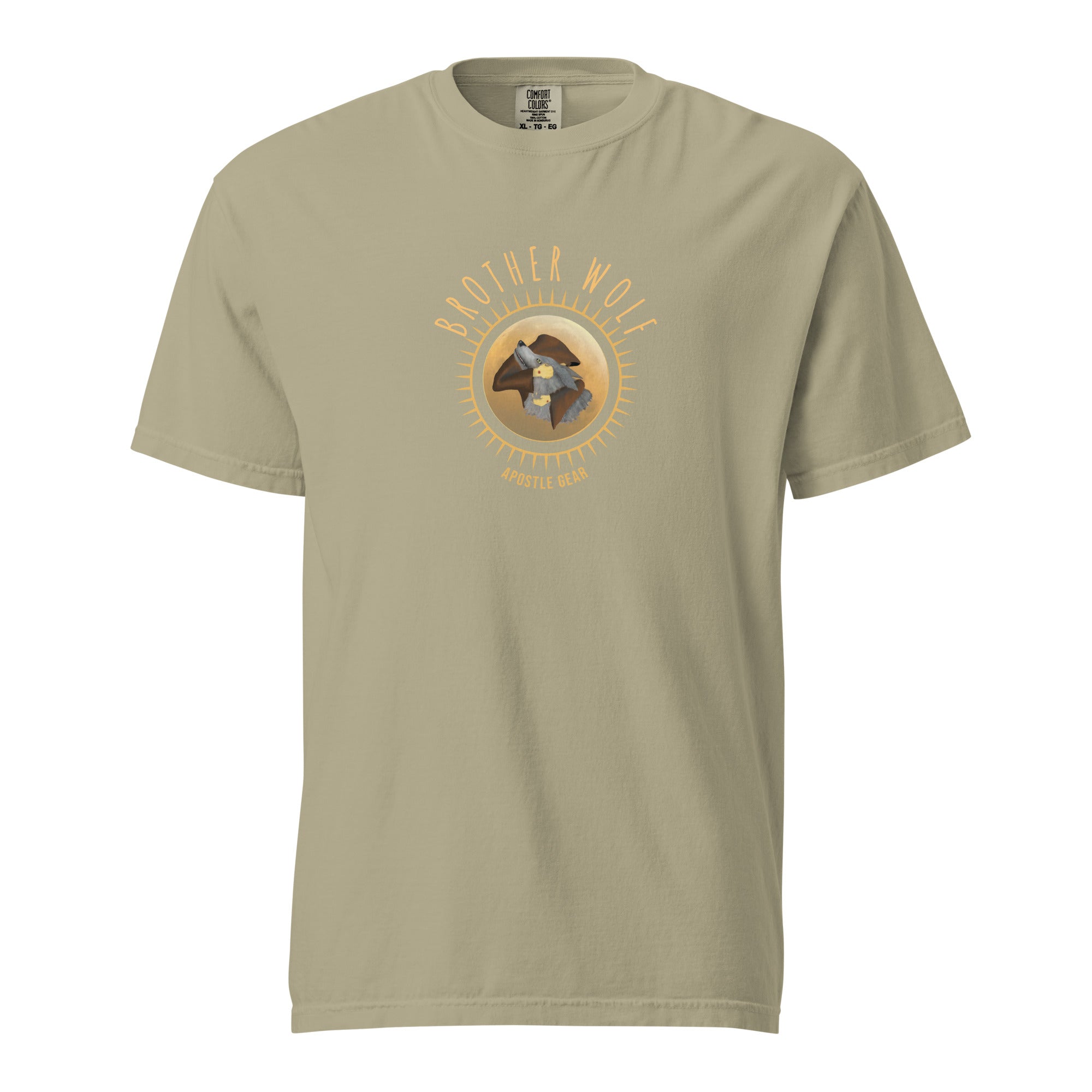 St. Francis of Assisi and the Wolf of Gubbio, or "brother wolf" as he called his canine frenemy, is featured in our exclusive Apostle Gear original T-shirt. Available in several nature-inspired colors that we think St. Francis would love.