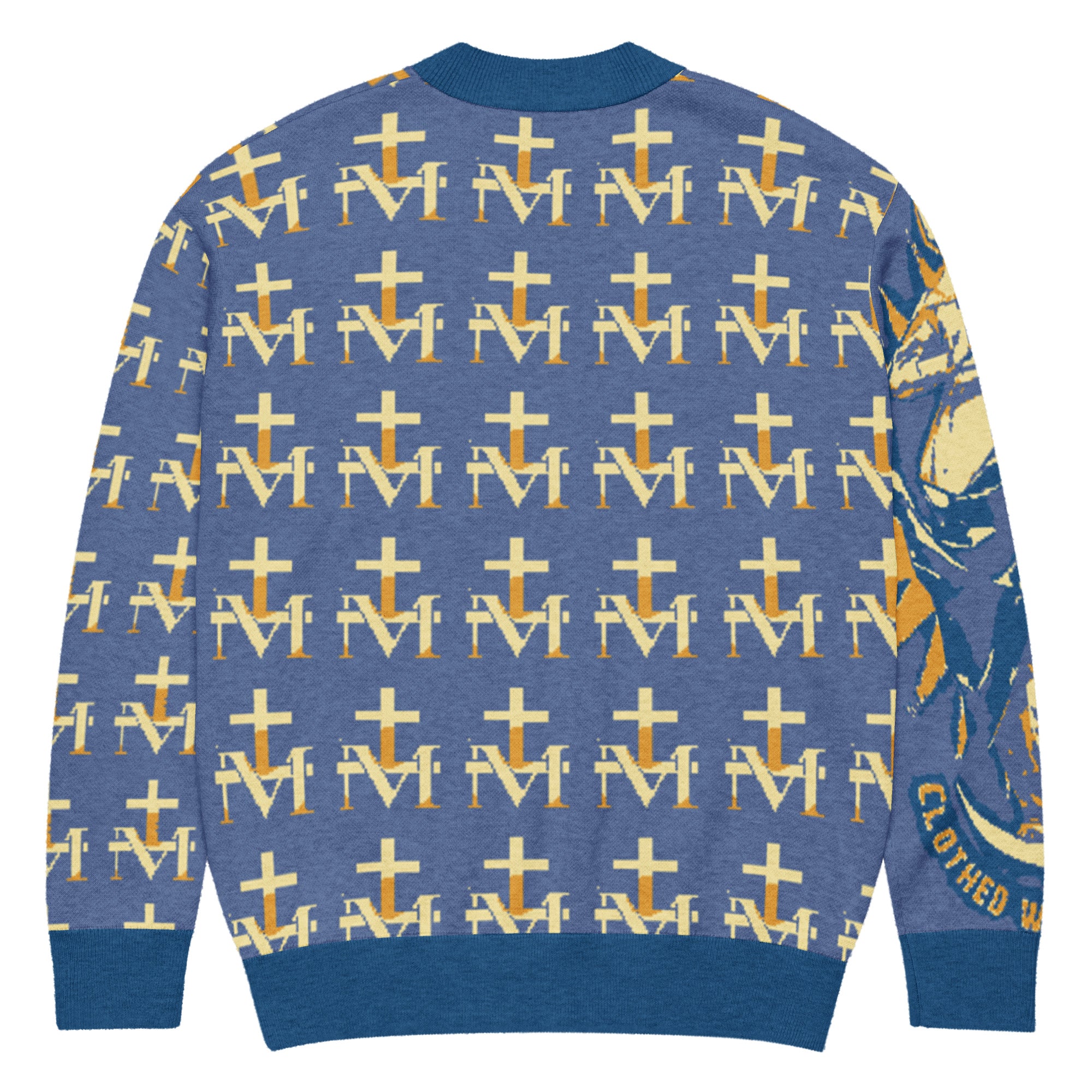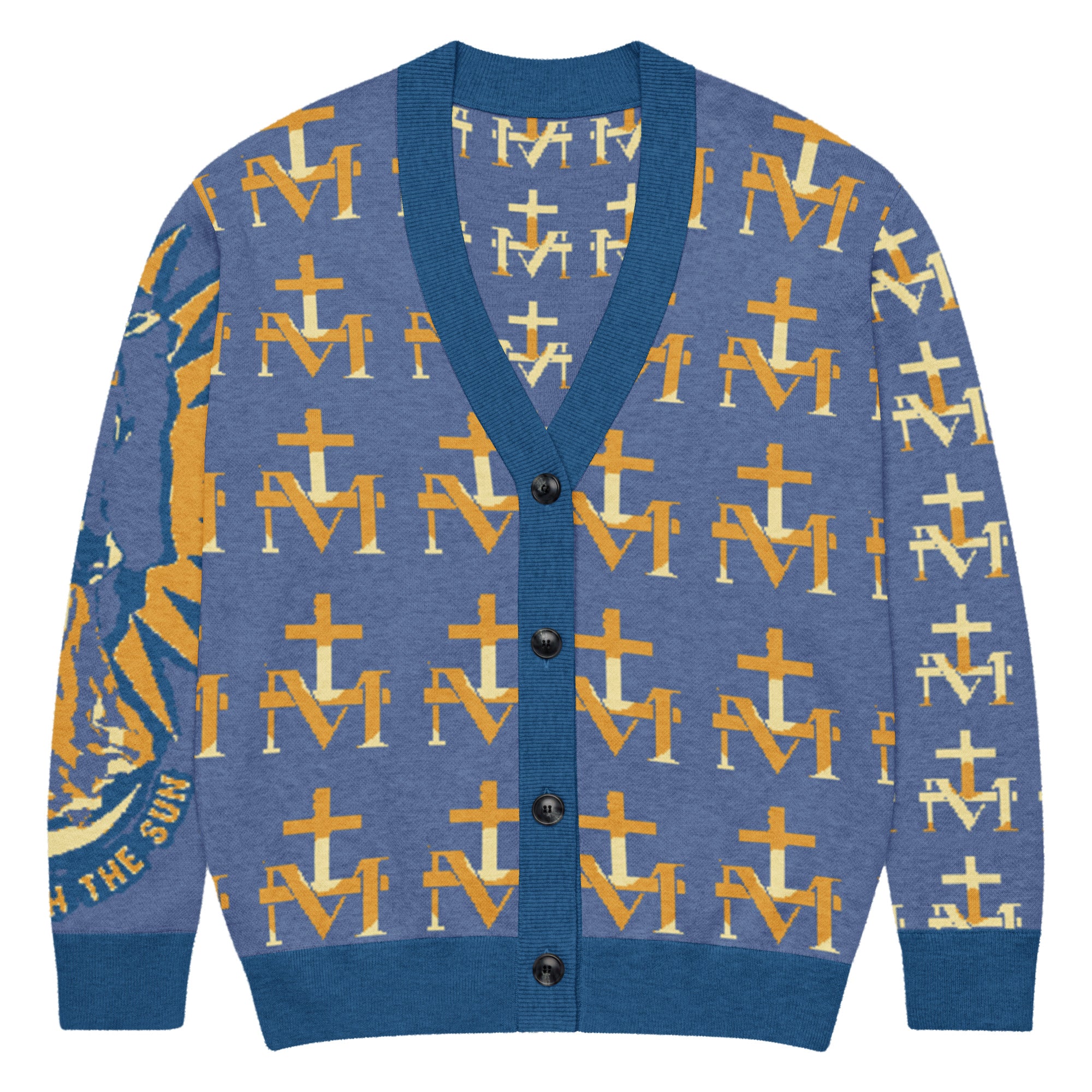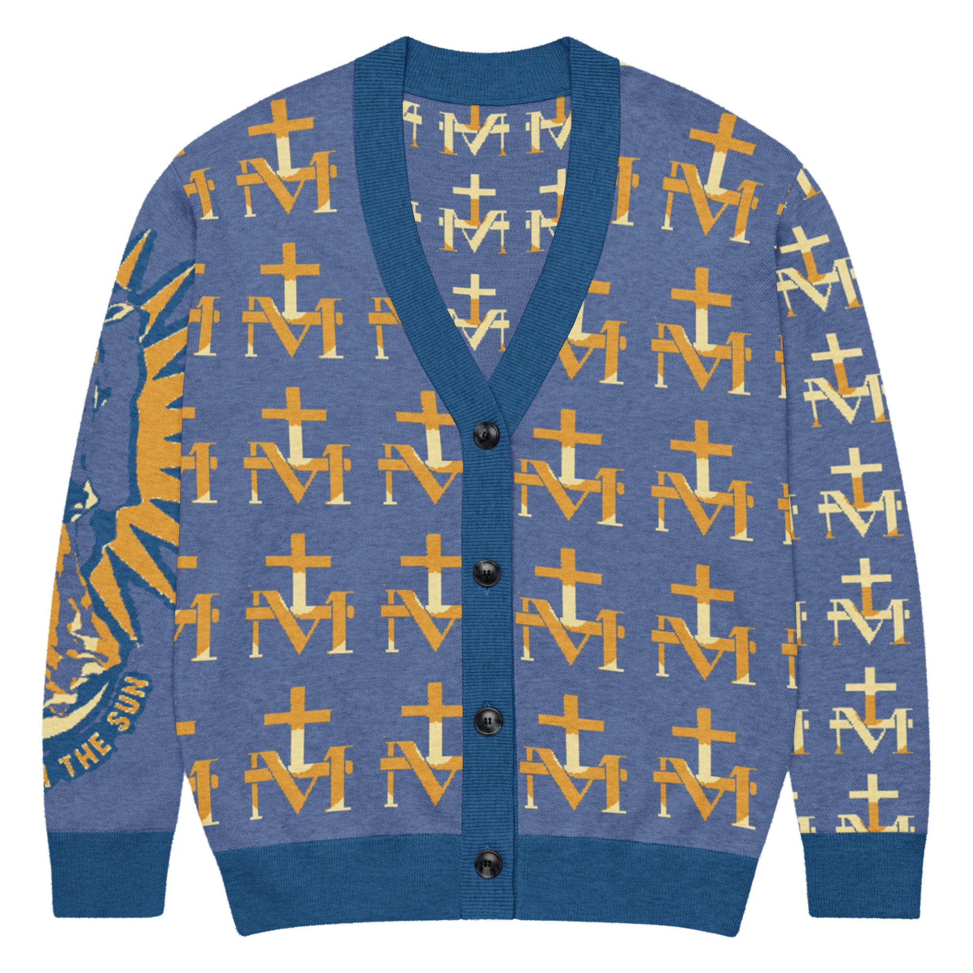 Featuring a pattern made with the Marian M and Cross symbol found on the backs of Miraculous Medals, this soft, comfortable cardigan is made of a lightweight fabric gives it a cozy feel, ideal for layering. The jacquard knit adds a luxurious texture and modern look.