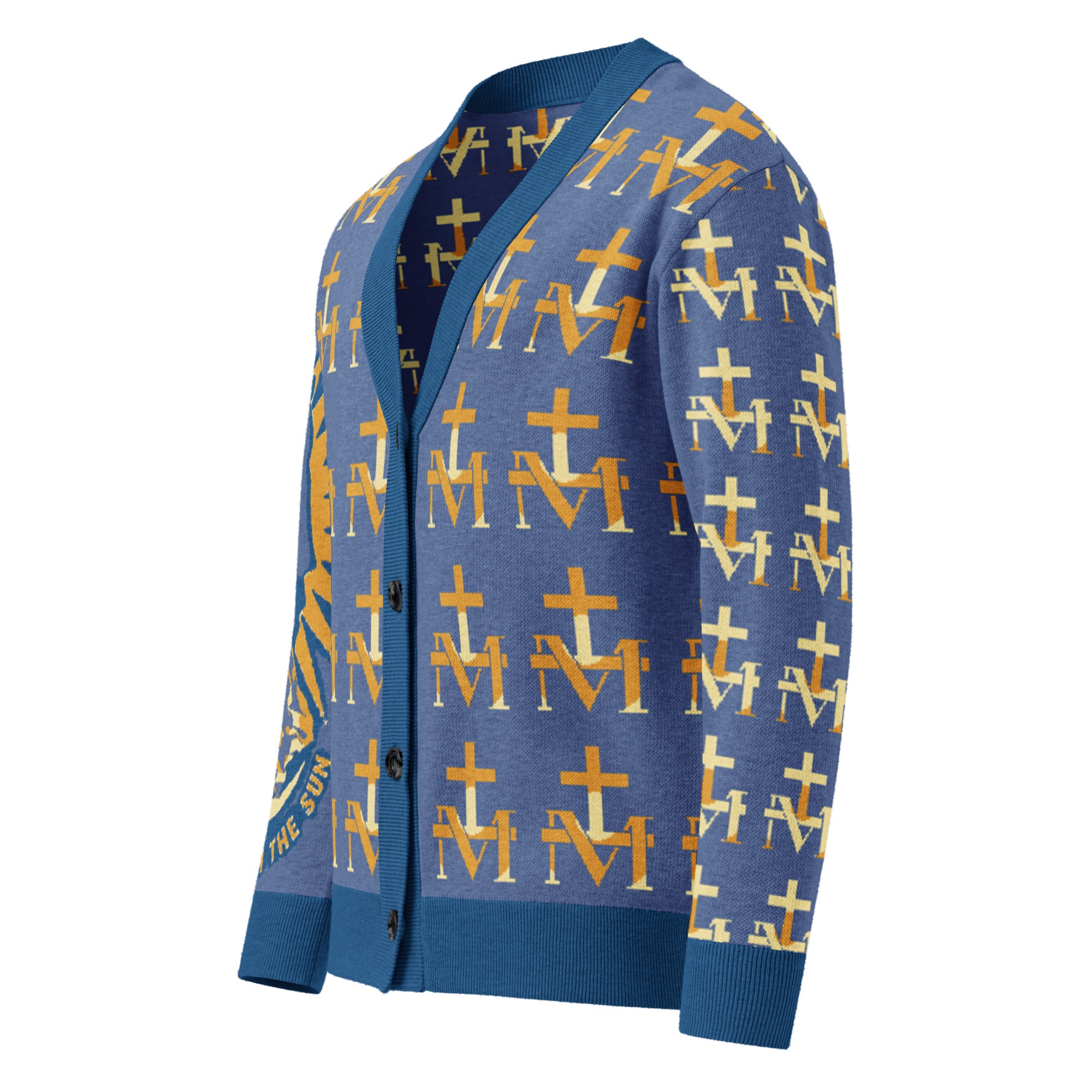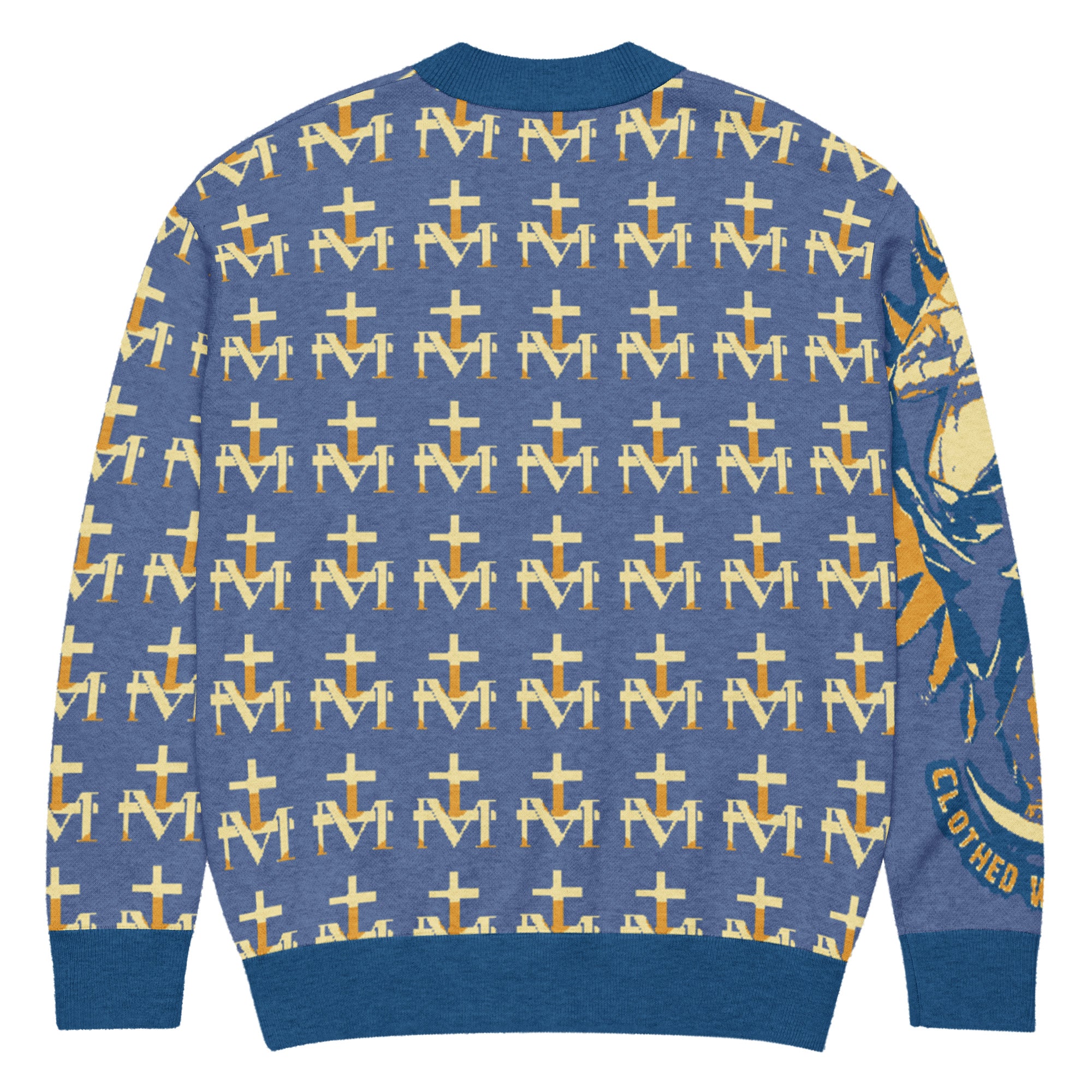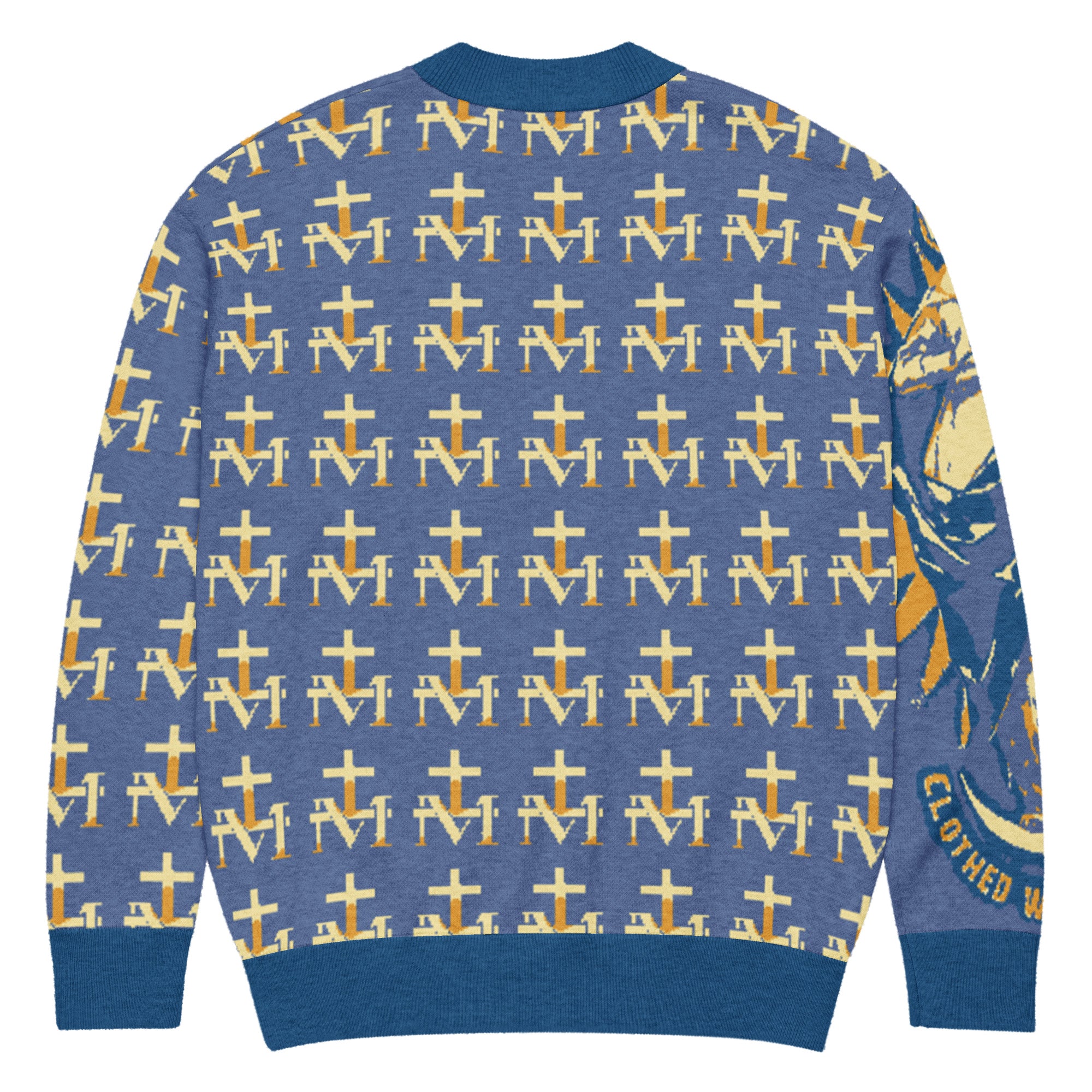 Featuring a pattern made with the Marian M and Cross symbol found on the backs of Miraculous Medals, this soft, comfortable cardigan is made of a lightweight fabric gives it a cozy feel, ideal for layering. The jacquard knit adds a luxurious texture and modern look.