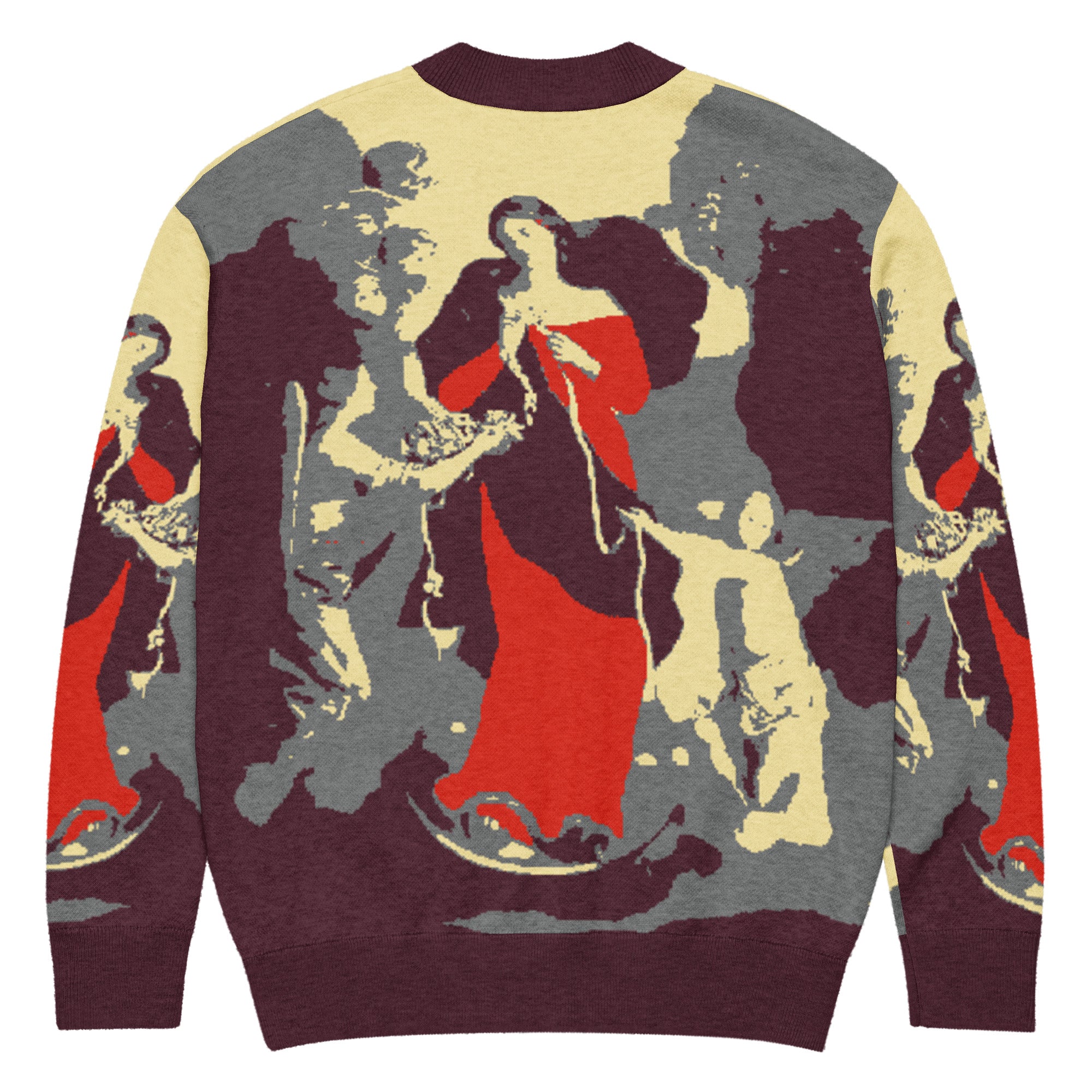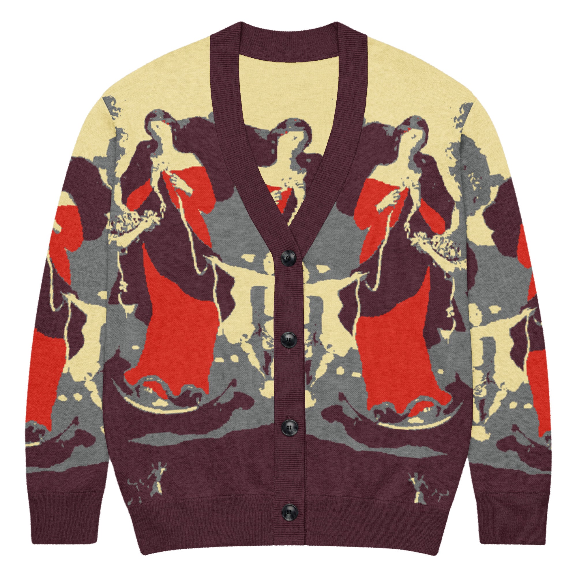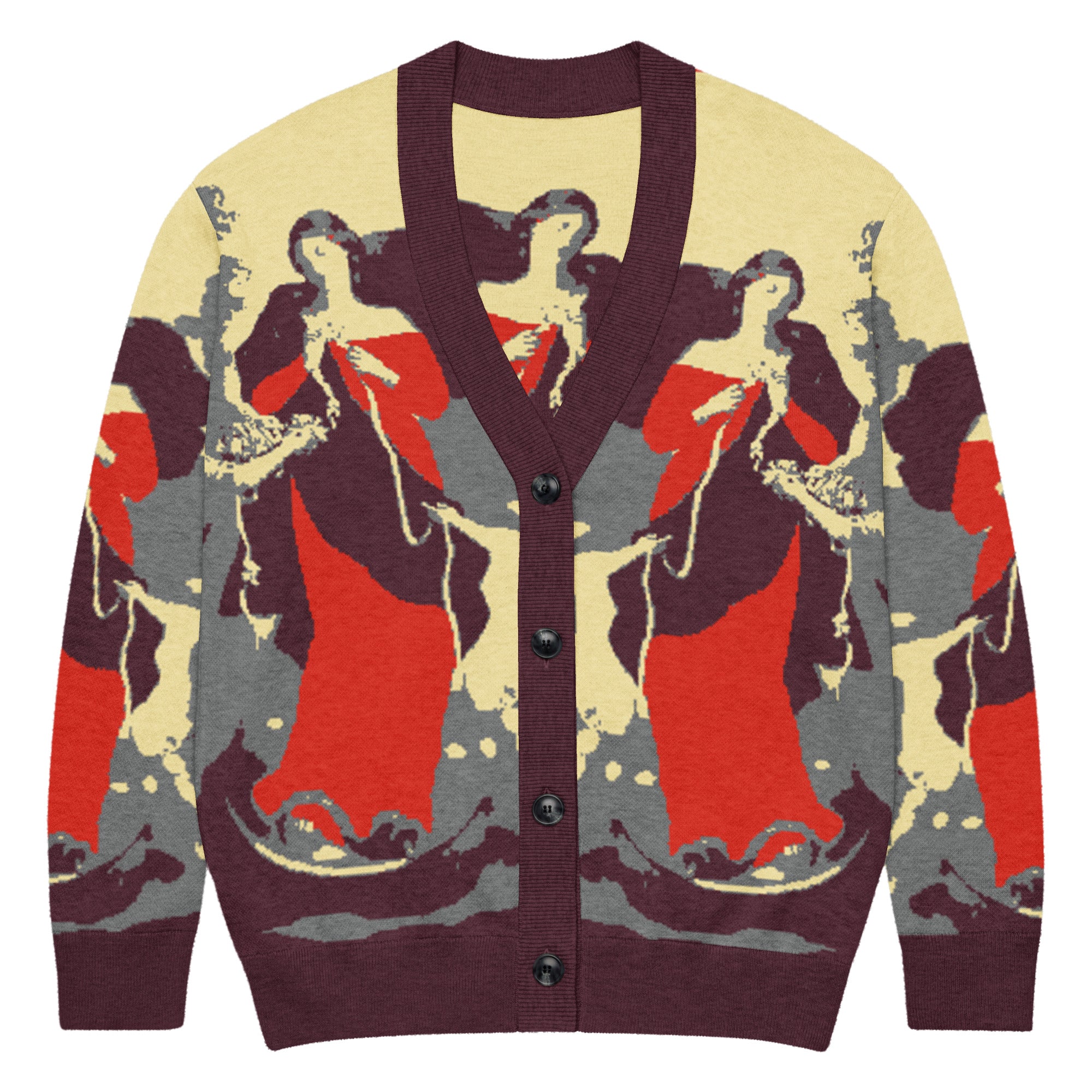 Knits and knots go hand in hand! Wear your devotion to Our Lady, Undoer of Knots, on this premium knitted cardigan sweater.