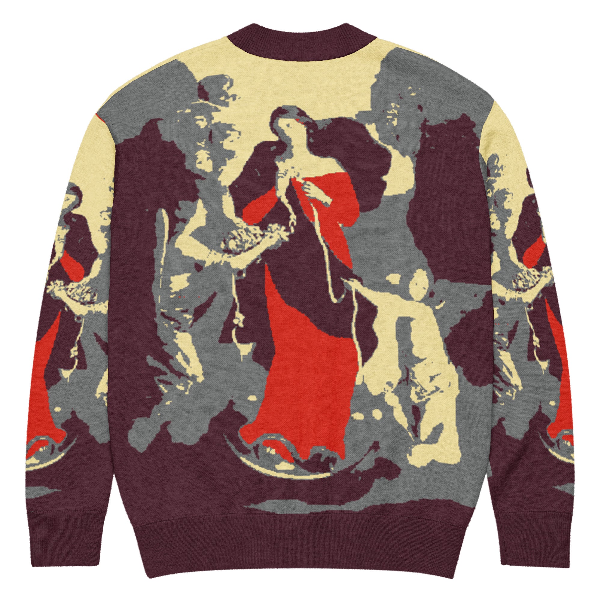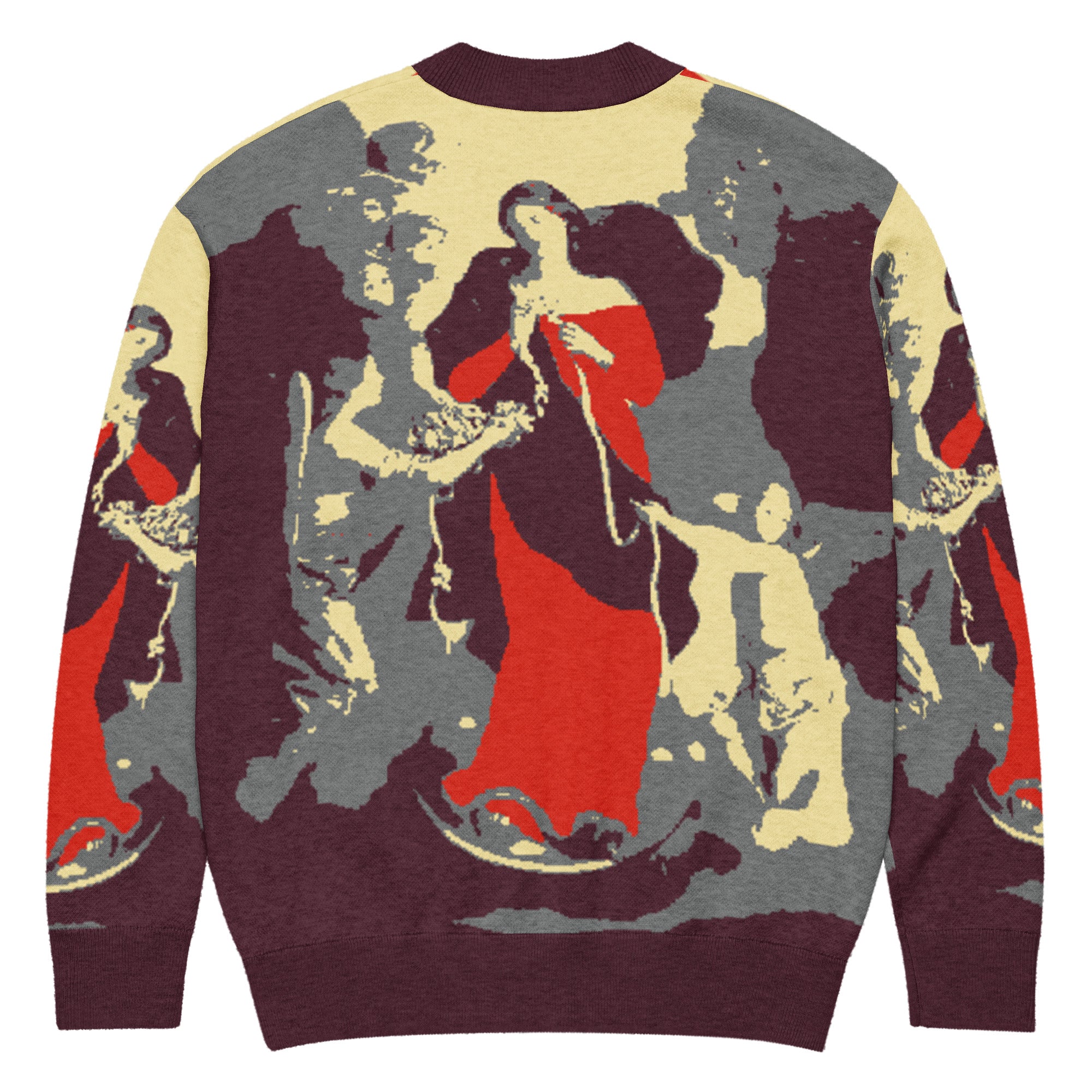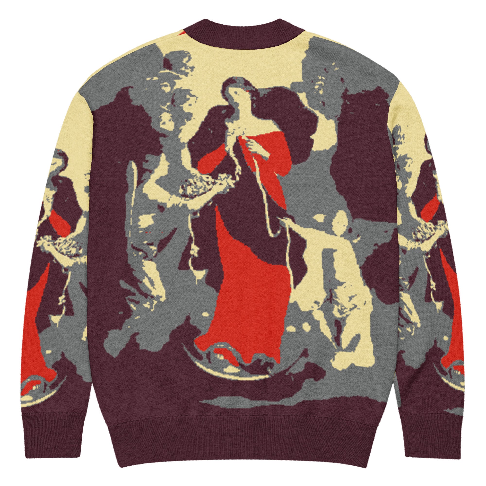 Knits and knots go hand in hand! Wear your devotion to Our Lady, Undoer of Knots, on this premium knitted cardigan sweater.