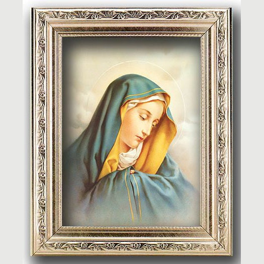 Our Lady Of Sorrow In Ornate Silver Frame 10" X 12"