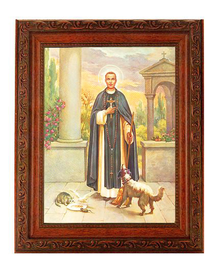 ST. Martin Deporres IN Ornate Wood Frame 10.25-inch X 12-inch Overall Dimensions. 1.25-inch Wide Facing to Fit an 8-inch x 10-inch Italian Lithograph Under Glass. This St. Martin Deporres In Ornate Wood Frame measuring 10-inches by 12-inches, with the print measuring 8-inches by 10-inches, features the Catholic Shop.com money-back guarantee.