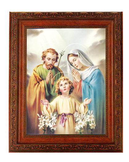 The Holy Family IN Ornate Wood Frame 10.25-inch X 12-inch Overall Dimensions. 1.25-inch Wide Facing to Fit an 8-inch x 10-inch Italian Lithograph Under Glass. This The Holy Family In Ornate Wood Frame measuring 10-inches by 12-inches, with the print measuring 8-inches by 10-inches, features the Catholic Shop.commoney-back guarantee.