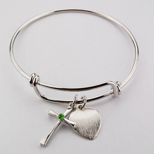 Youth Pewter Cross with Peridot Engravable Bracelet