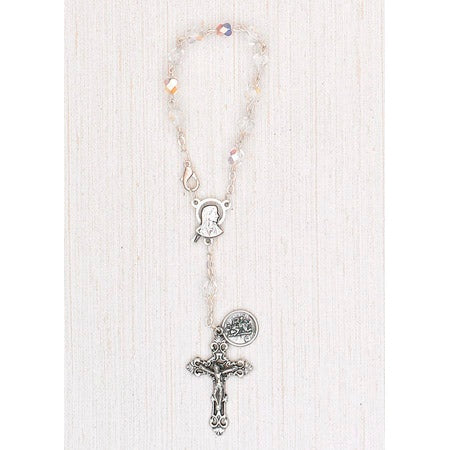 4-Pack - 6mm Glass Clear Auto Rosary with Premium Centerpiece and Crucifix with St Christopher Pendant