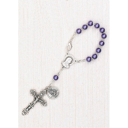4-Pack - 6mm Purple Pearl Auto Rosary with Premium Centerpiece and Crucifix with St Christopher Pendant