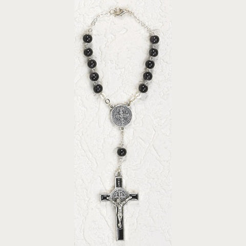 7mm Black Glass St Benedict Auto Rosary