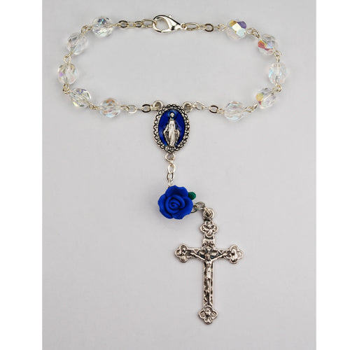 Crystal Auto Rosary with Blue Rose