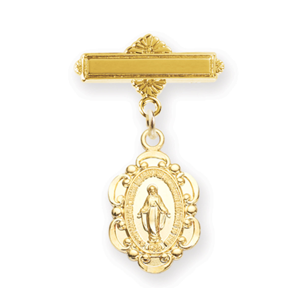 This Gold over Sterling Baby Miraculous Pin is made in the USA.