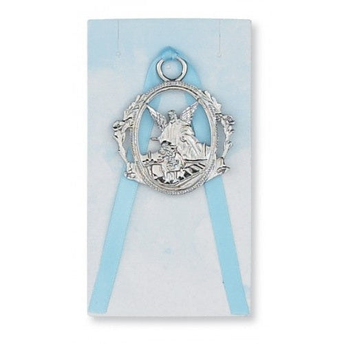 Introduce a touch of divine protection to your baby's nursery with our Guardian Angel Crib Medal Blue. Crafted from high-quality silver, this beautifully designed medal serves as a constant reminder of the guardian angels assigned to watch over your little one. Measuring 2 inches, it’s the perfect size to hang above the crib, ensuring your child feels comforted and safe as they sleep. Each medal comes beautifully packaged, making it an ideal gift for baptisms or baby showers.