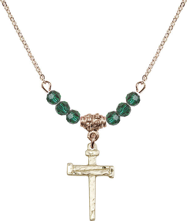 Gold-Plated Necklace with 4mm Emerald Crystal Beads & 14K-Filled Nail Cross Medal