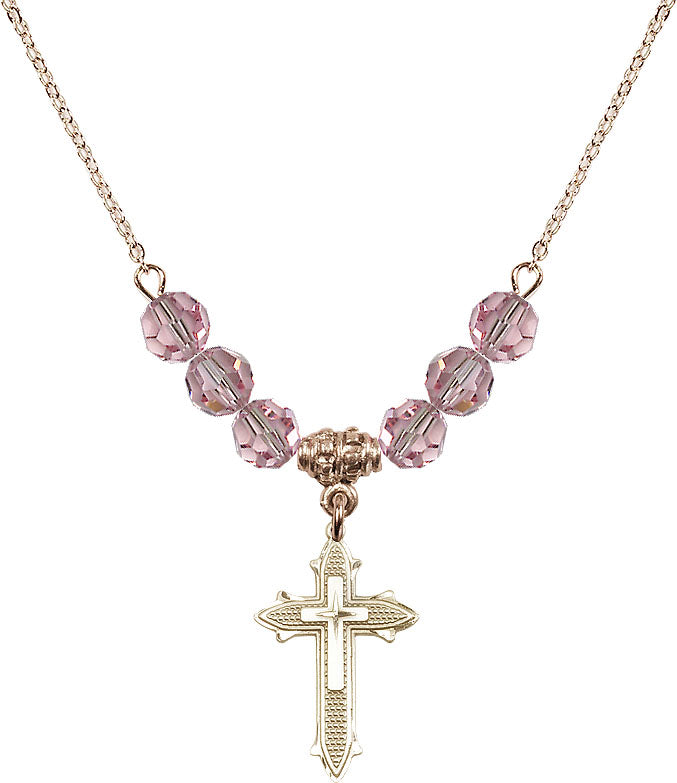18" Plated Necklace with 4mm Light Rose Crystal Beads & 14K-Filled Cross on Cross Medal | Engravable