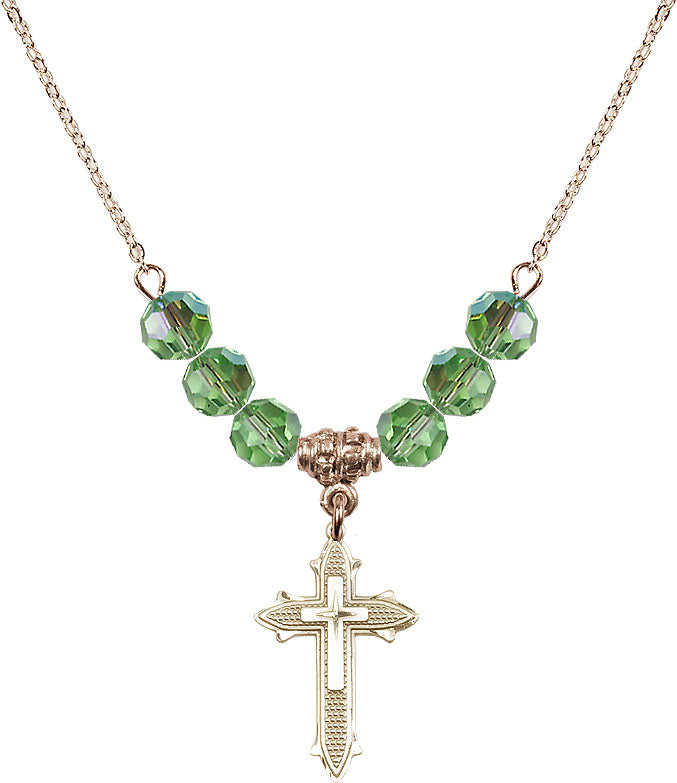 18" Plated Necklace with 4mm Peridot Crystal Beads & 14K-Filled Cross on Cross Medal | Engravable