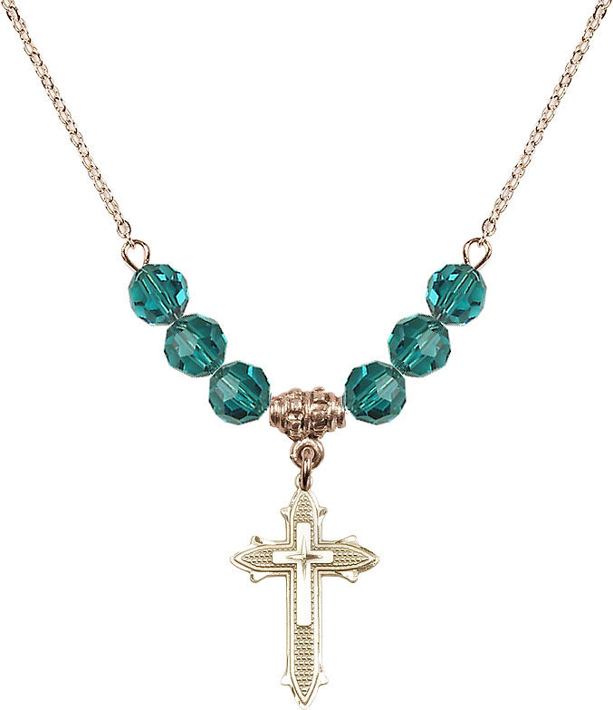 Our 18" Hamilton Gold Plated Necklace with 4mm Zircon Crystal Beads featuring a 14kt Gold Filled Cross on Cross Medal. is proudly manufactured in the USA.