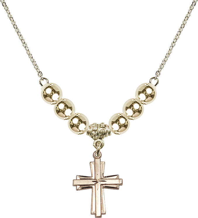 Gold-Plated Necklace with 6mm 14kt Gold Filled Beads & 14K-Filled Cross Medal