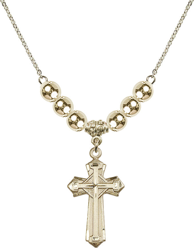 18" Plated Necklace with 6mm 14kt Gold Filled Beads & 14K-Filled Cross Medal | Engravable