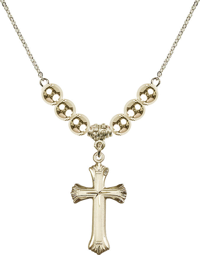 18" Plated Necklace with 6mm 14kt Gold Filled Beads & 14K-Filled Cross Medal | Engravable