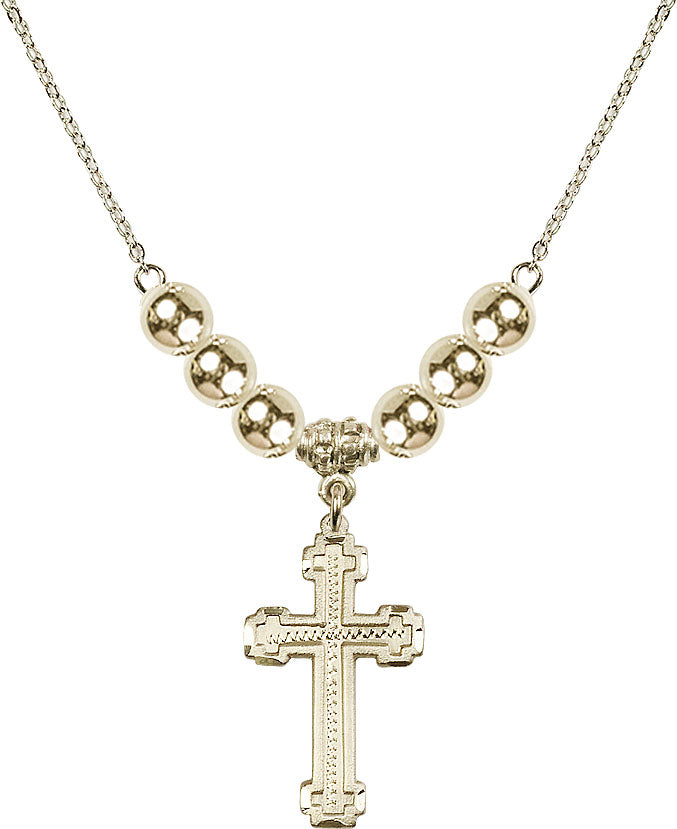 Gold-Plated Necklace with 6mm 14kt Gold Filled Beads & 14K-Filled Cross Medal