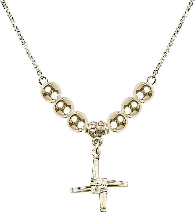 Gold-Plated Necklace with 6mm 14kt Gold Filled Beads & 14K-Filled St. Brigid Cross Medal