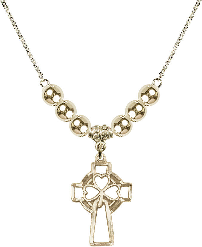 Gold-Plated Necklace with 6mm 14kt Gold Filled Beads & 14K-Filled Shamrock Cross Medal