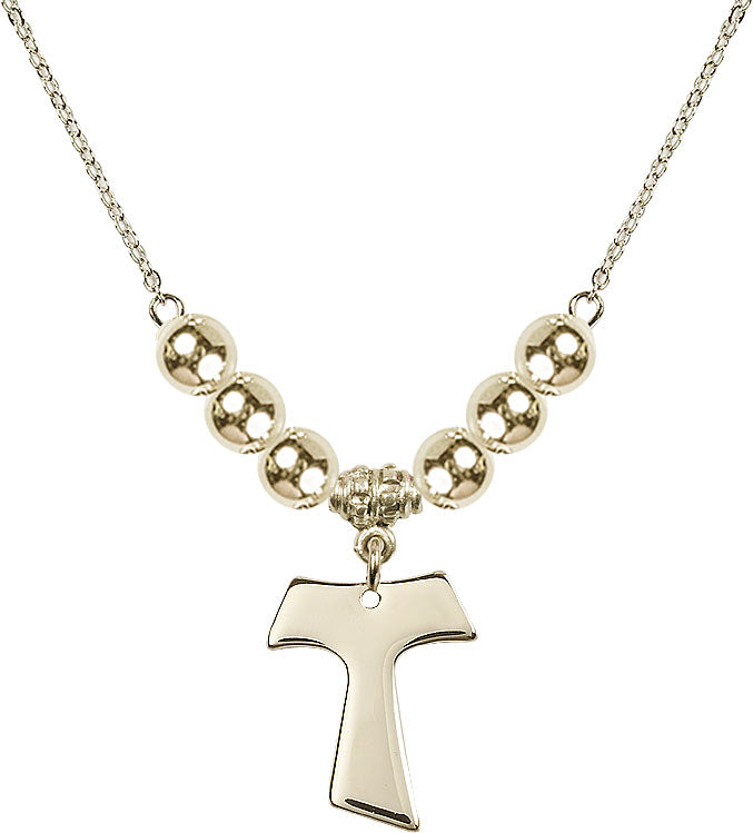 Gold-Plated Necklace with 6mm 14kt Gold Filled Beads & 14K-Filled Tau Cross Medal