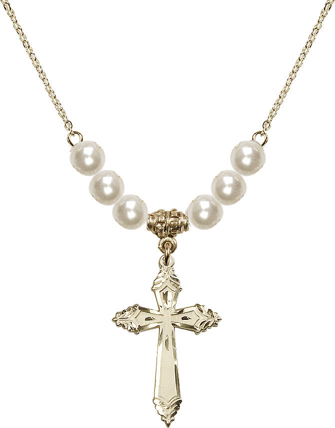 Gold-Plated Necklace with 6mm Faux-Pearl Beads & 14K-Filled Cross Medal