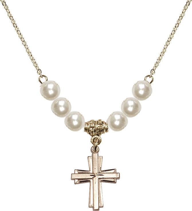 Gold-Plated Necklace with 6mm Faux-Pearl Beads & 14K-Filled Cross Medal