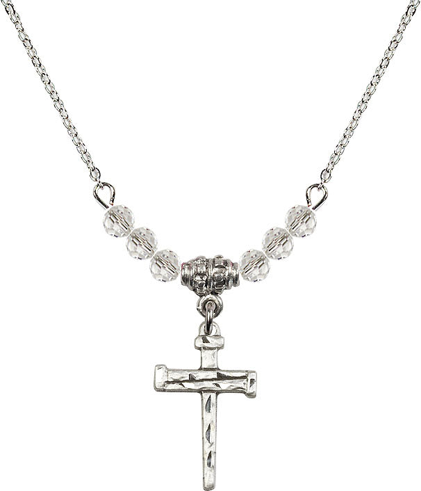 Our 18" Rhodium Plated Necklace with 4mm Crystal Beads featuring a Sterling Silver Nail Cross Medal. is proudly manufactured in the USA.