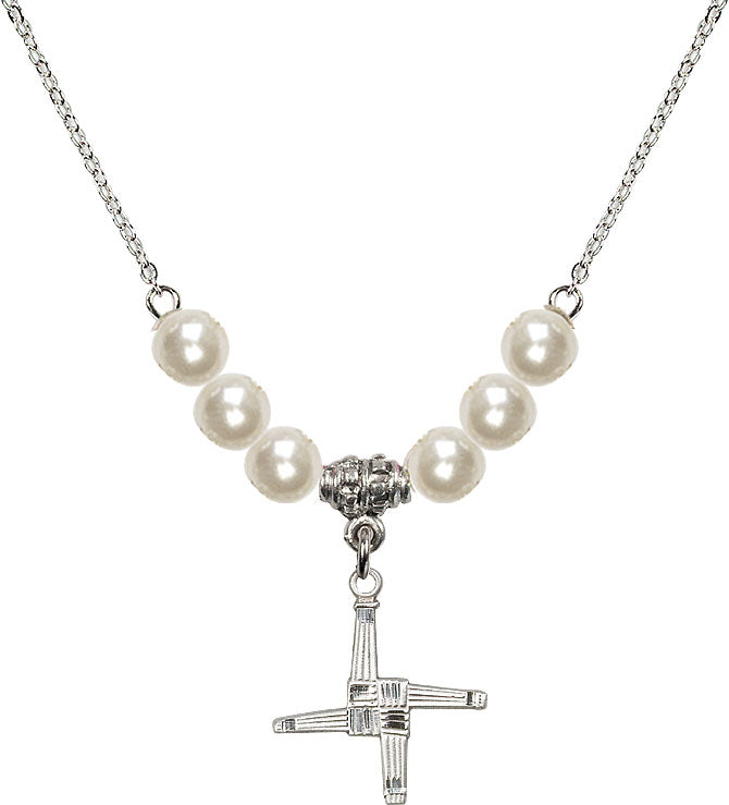 Necklace with 6mm Faux-Pearl Beads & Sterling Silver St. Brigid Cross Medal