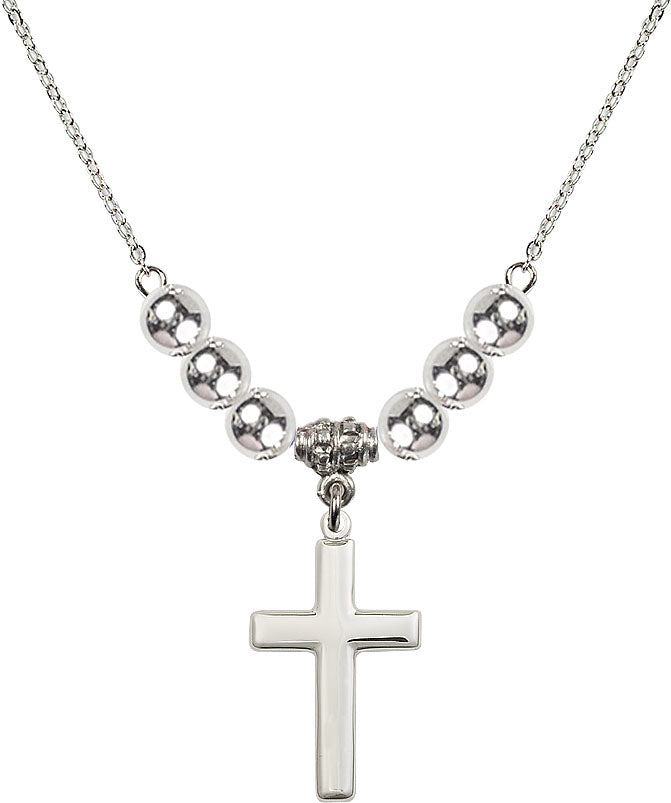 Our 18" Rhodium Plated Necklace with 6mm Sterling Silver Beads featuring a Sterling Silver Cross Medal. is proudly manufactured in the USA.