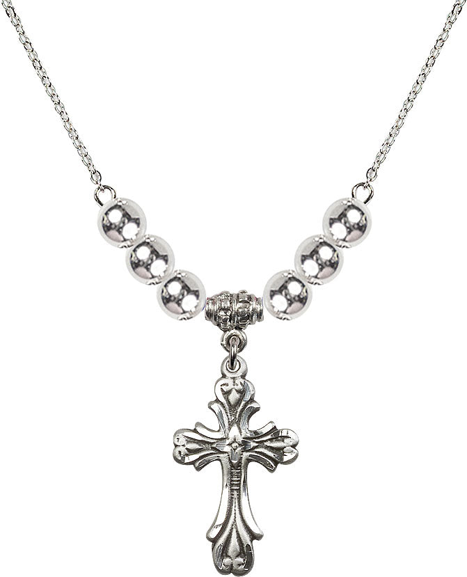 Necklace with 6mm Sterling Silver Beads & Sterling Cross Medal