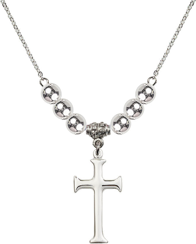 Our 18" Rhodium Plated Necklace with 6mm Sterling Silver Beads featuring a Sterling Silver Cross Medal. is proudly manufactured in the USA.