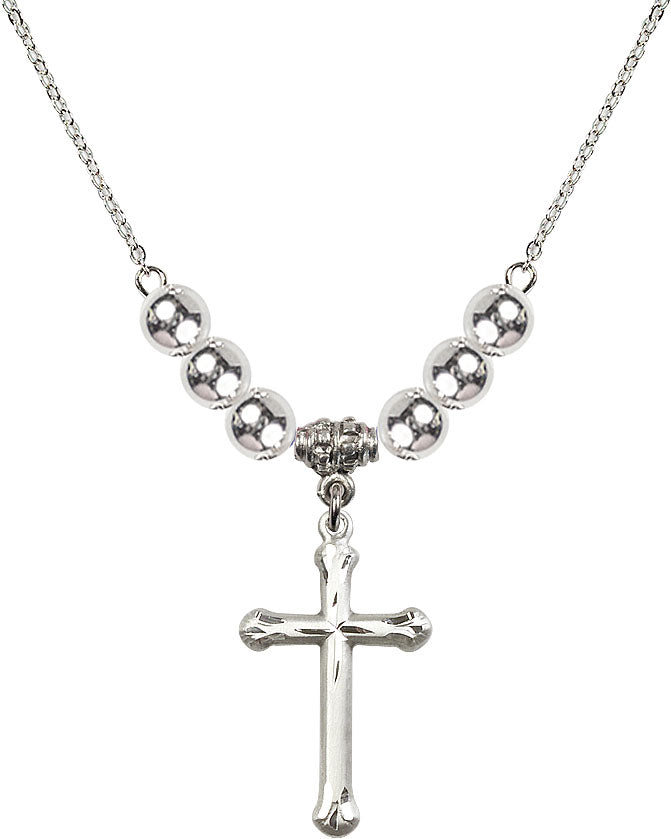 Our 18" Rhodium Plated Necklace with 6mm Sterling Silver Beads featuring a Sterling Silver Cross Medal. is proudly manufactured in the USA.