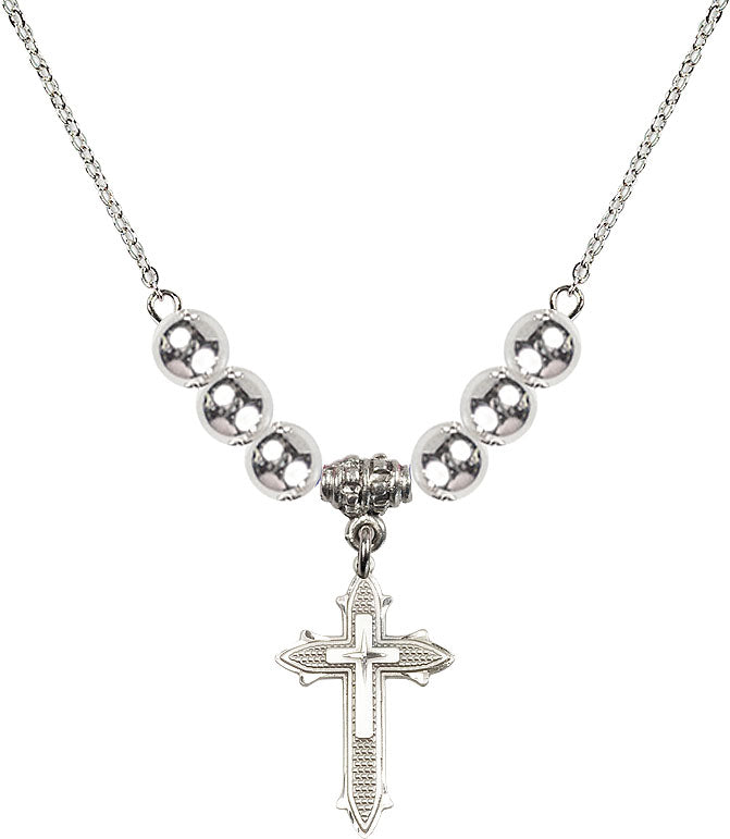 Our 18" Rhodium Plated Necklace with 6mm Sterling Silver Beads featuring a Sterling Silver Cross on Cross Medal. is proudly manufactured in the USA.