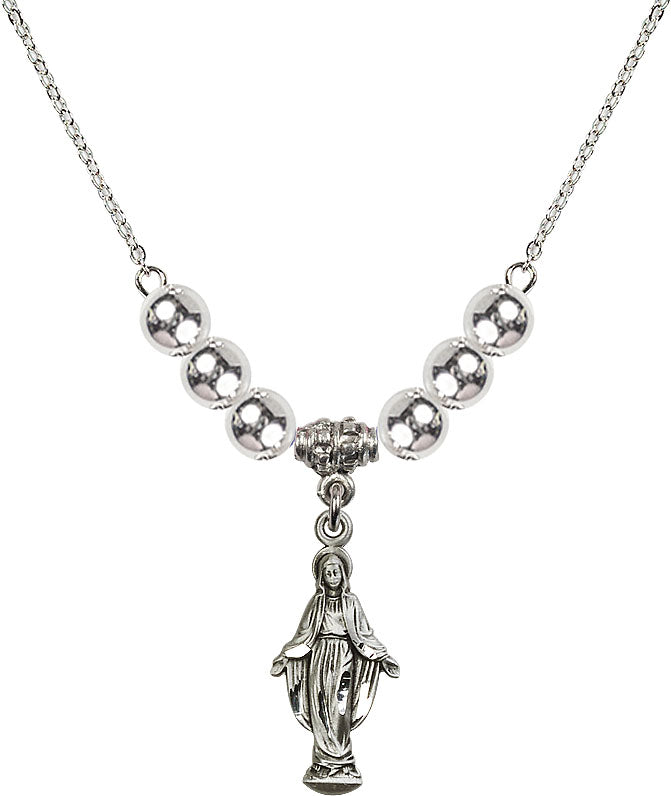 Necklace with 6mm Sterling Silver Beads & Sterling Miraculous Medal