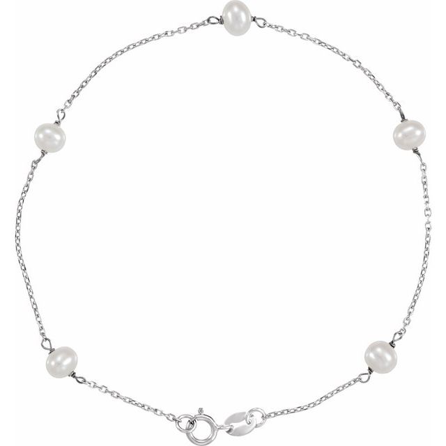 14K White Cultured White Freshwater Pearl 5-Station 7" Bracelet