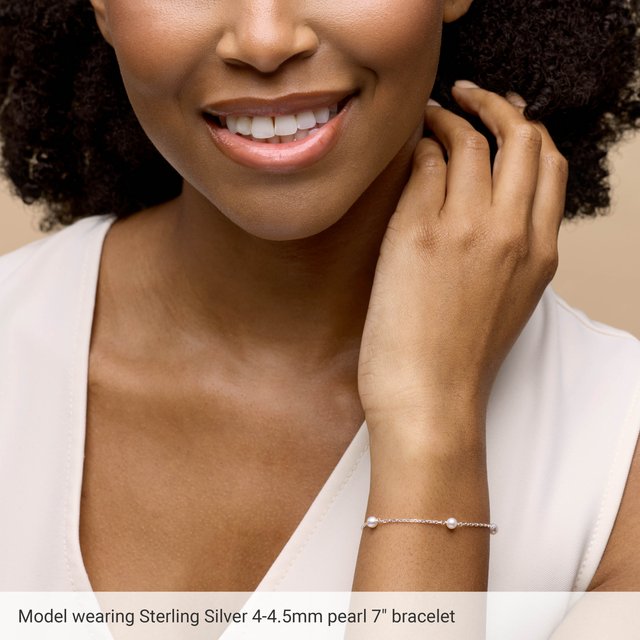 Sterling Silver Cultured White Freshwater Pearl 5-Station 7" Bracelet